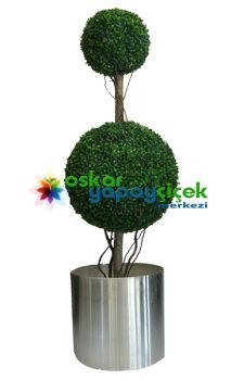 Üçlü Yapay Top Şimşir - Fiber Saksılı